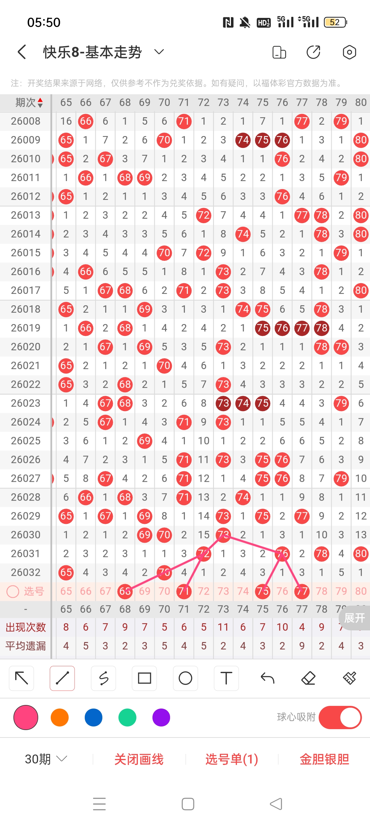 6、分区法:快乐8共分为4个区,一区:1-20,二区:21-40,三区:41-60,四区:61-80。