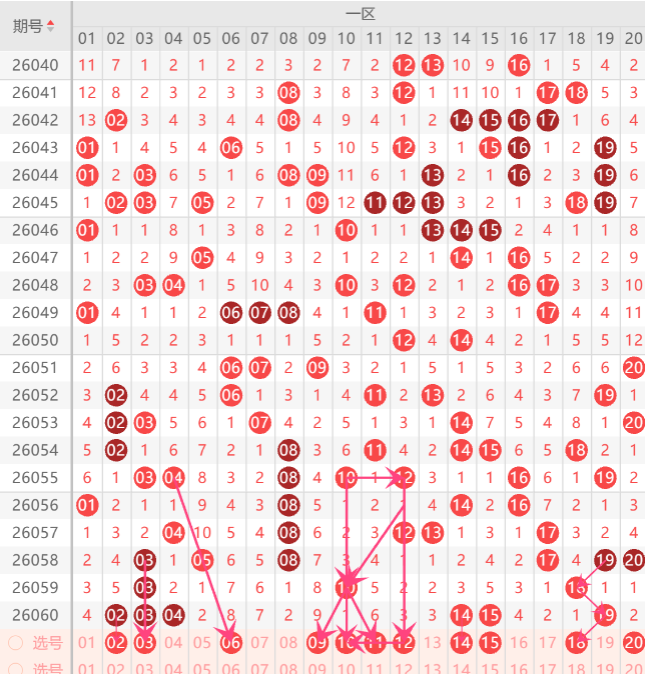 [免费文章】初心小妹快乐8第2026061期走势分析,注意参考