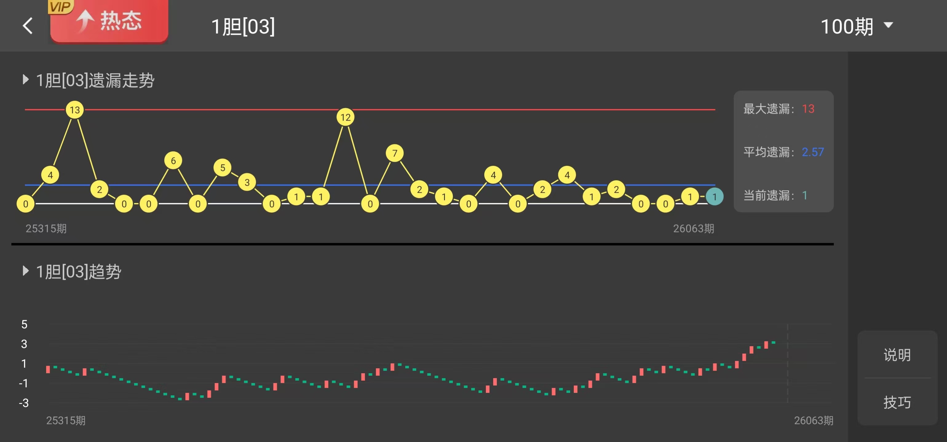 04 在近 6 期仅遗漏 2 期,且无连续遗漏超过 1 期的情况,走势稳定;47 虽在 2026062 期遗漏 1 期,但随即在 2026063 期补出,符合热号 “短暂调整、快速回归” 的走势特征。二者均无长期遗漏的冷号属性,避免了冷号持续沉寂的风险,同时也未出现过度密集出号后的 “透支” 隐患,走势节奏健康。