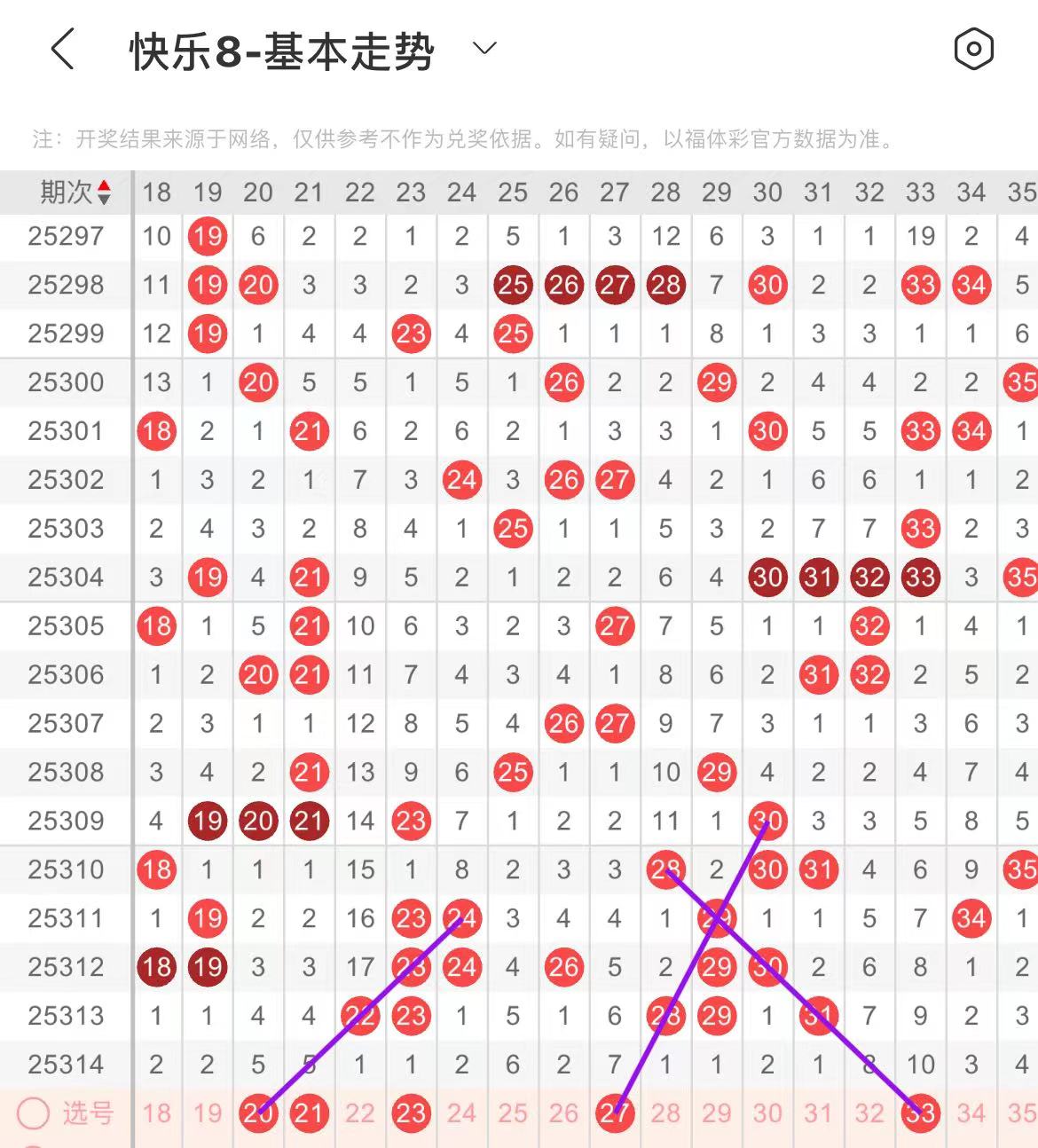 21-30区:本区间上期断区了,从号码走势图上看,该区现属于温热区,连续断区的可能性不,本期注意号码回补,出号个数在三个号码左右。有出号走势的号码有23号,上下对称出号走势,防21.23同出的可能,27号,斜连出号走势。