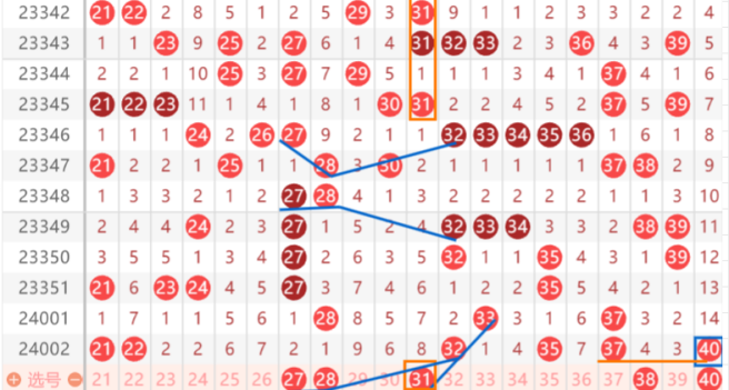 上期二区间后区位出号走热,其中冷码60关联40出号,以四区间 7、9、0尾同出,本期二区间39作为明号依然可作为凤尾号参考,但要结合8、0尾往期热态关联走势来最终筛选1码关注,前区出号27、28多期联动32、33尾出号,本期可选择1码重点布防;