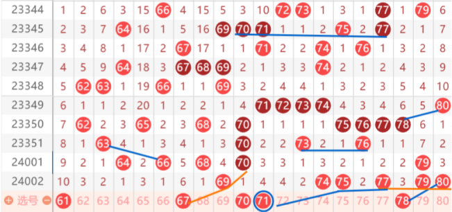 本期分析号码为:01、05、11、14、18、20、27、28、31、38、40、41、43、44、49、57、58、61、67、70、71、78。