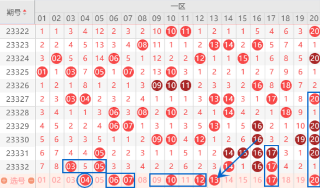 本期的01 04 07号数字我们注意一下,他们是属于1路号码,已经遗漏3期了,本期应该是要出号了,我们可以重点关注一下。本期的06 07号数字我们要注意一下,本期落下一个号码的情况是很大的。连号空一带号09 10 12号数字本期要回补号码了,我们要注意了,有机会回补两个号码的。本期的13号数字是属于斜4连号码,出号机会还是有的。本期的17号数字我们注意一下出3重的情况。本期的19 20 21号数字我们要注意一下出现一个号码的情况。