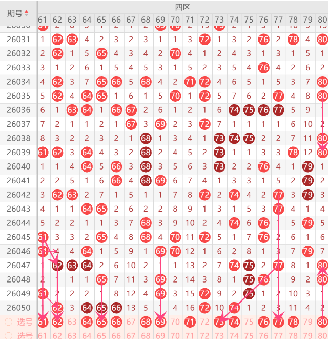 四区间的打底号是63.65.66.68.69.71.73.74.76.77.80参考4-5码开出机会