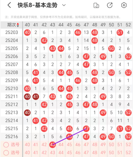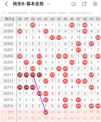 42码,遗漏间隔为7.1.1,形态为ABB,且如上图所示,与往期奖号40 41码形成一个隔2的斜3连,所以看好。