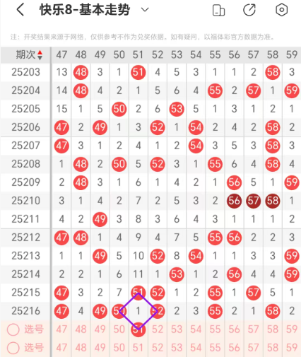 51码,如上图所示,与往期奖号50 52码形成一个正方形,所以看好。
