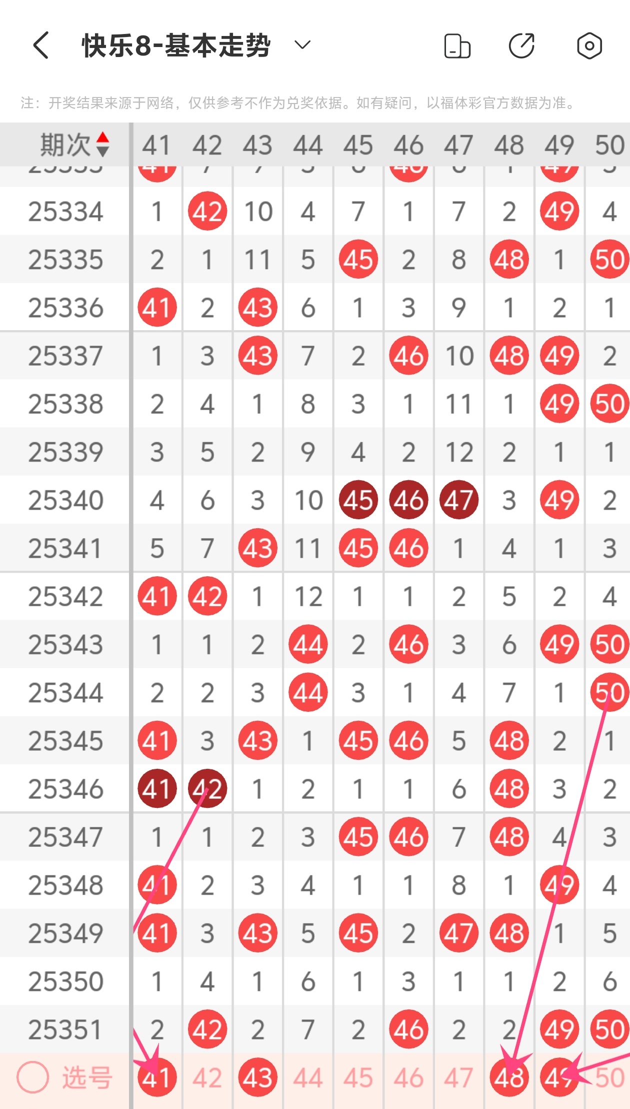 上期第五区间开出42 46 49 50,41为斜连走势,48为斜连走势,49为斜连走势,本期推荐48 49