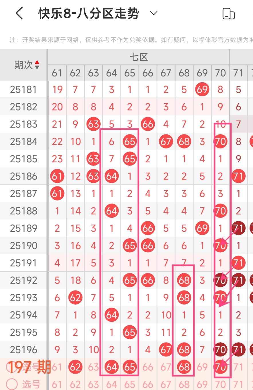 上期七区开出67 68 70这3个号码,本期考虑出2个左右。