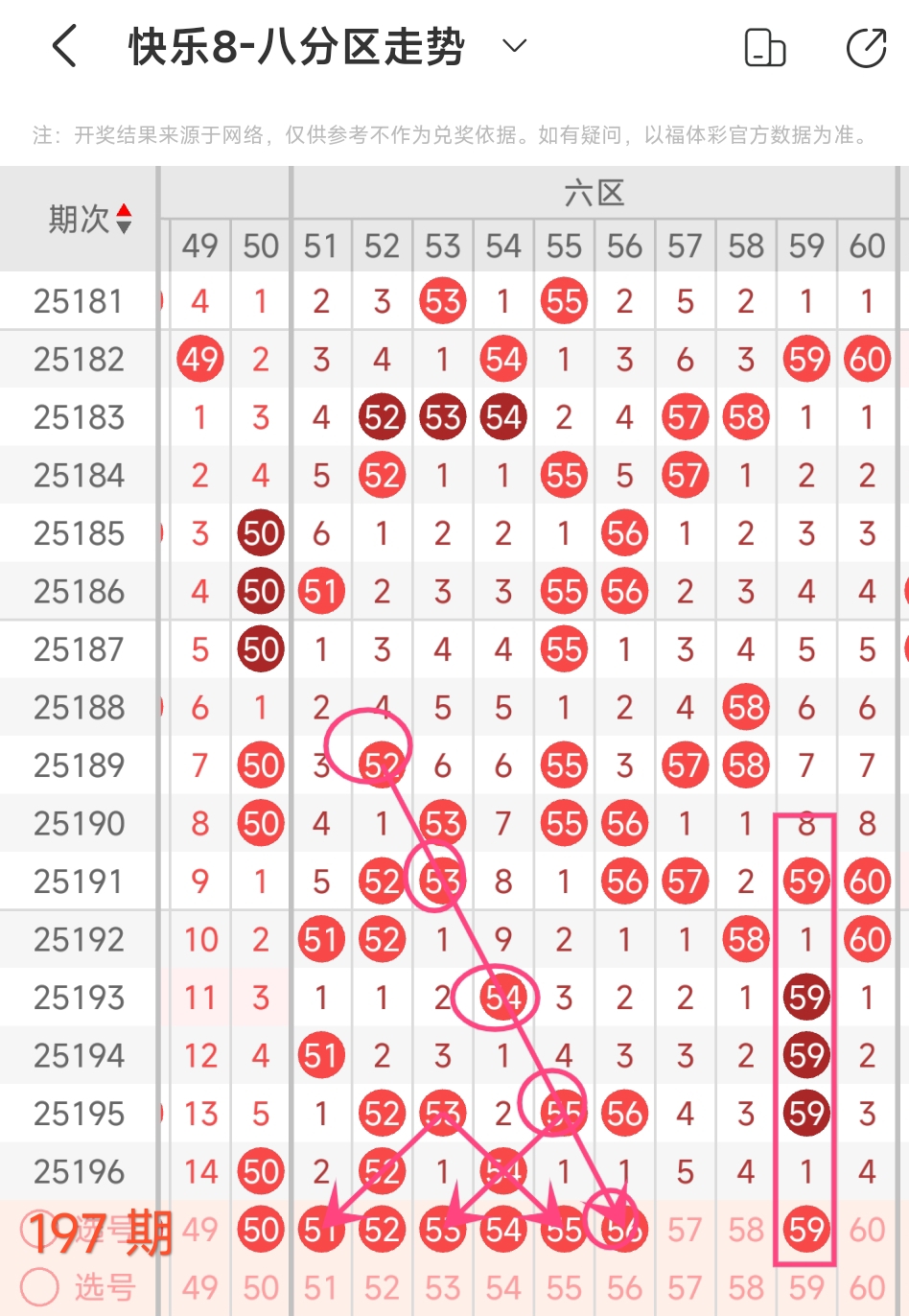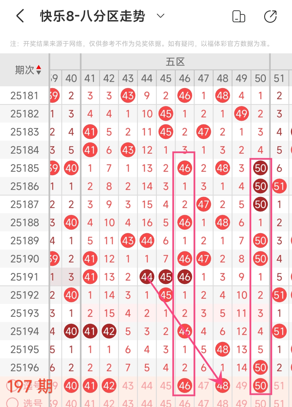 上期五区开50这1个号码,本期该区应该出号2个左右
