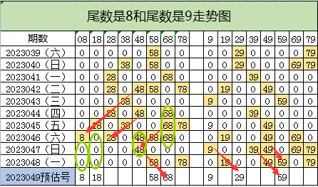 快乐8第23049期尾数走势分析