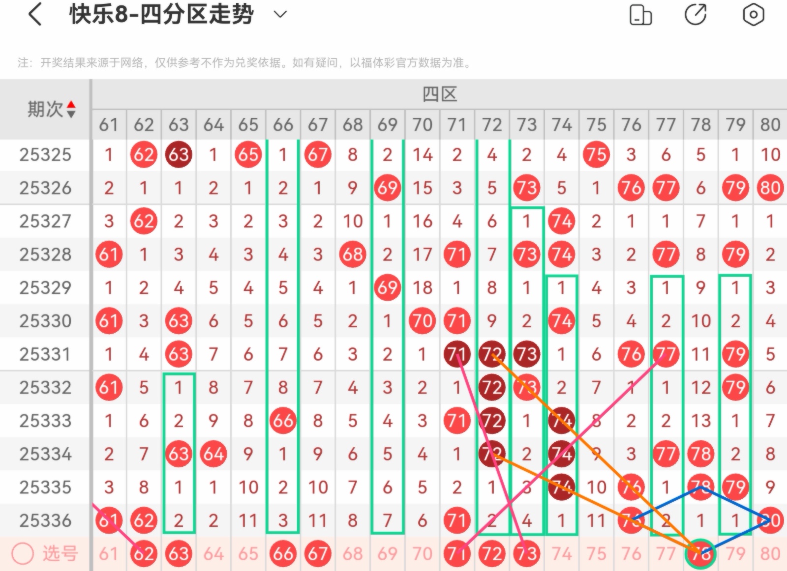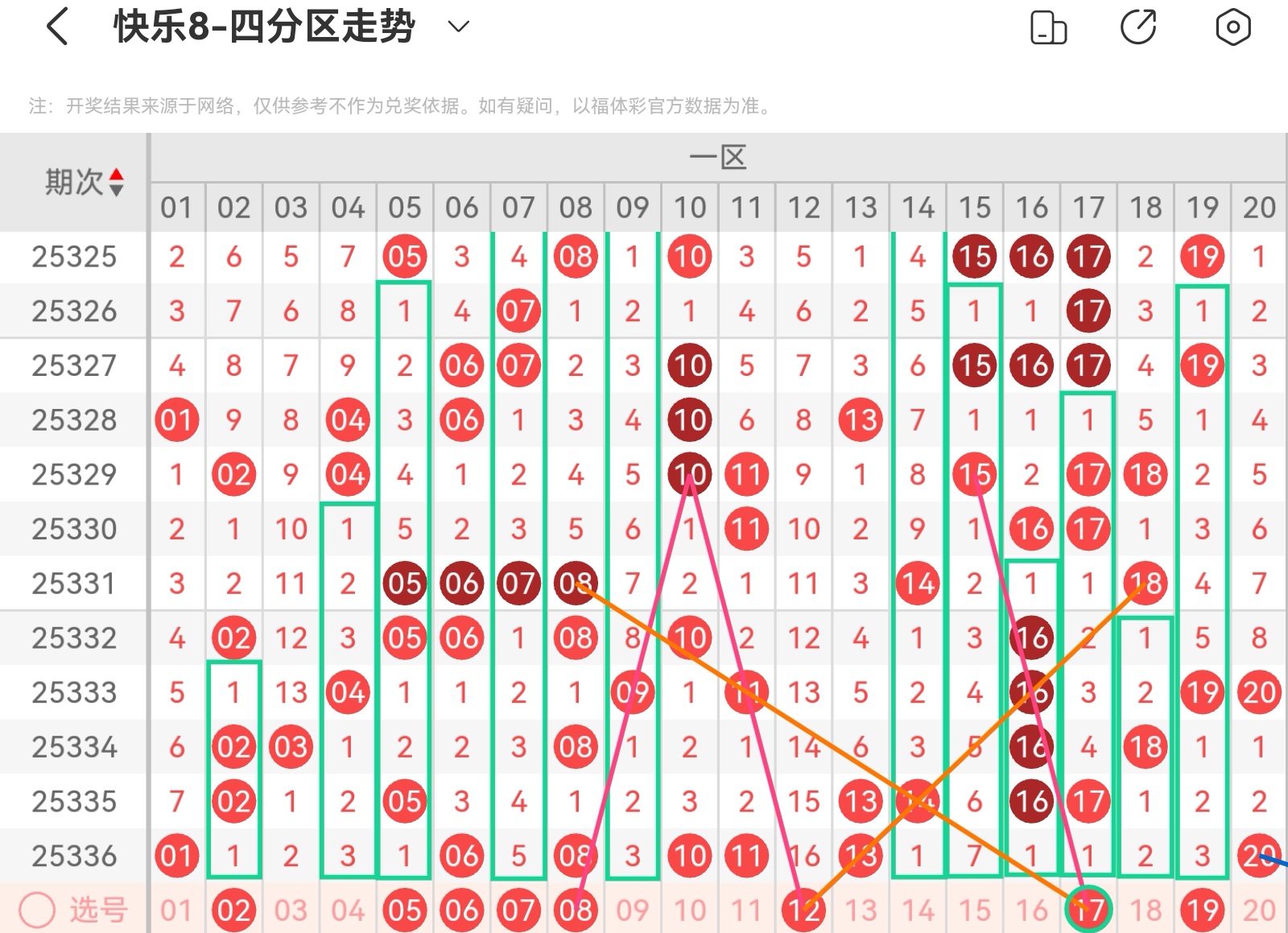 快乐八第25337期基本走势分析 (上期会员文章特号正确,六码中三)