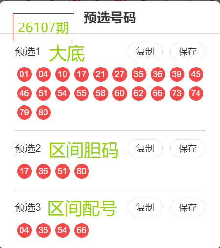 上期二区间开出5个号,偶数3连,夹码回补,本期看二区间4-5码,本区间遗漏大于等于10的有2码,上期周边并没有号码下落,本期【21】空5三斜连,不规则的空4-2-4对称形态,有望下落回补,为下期冷码下落做一定的铺垫,【27】本期看落重,形成了三角形态,又是斜三连,上上期开出四连号【33-34-35-36】后,再空1,本期有望下落2码,本期看【35-36】对子下落,模仿26102期的【39-40-41-42】空1下落【41-42】形态,【39】阶梯落号点位,四重后再空4,本期有一定概率回补,本期二区间关注【21-27-35-36-39】 二区间胆码:【36】
