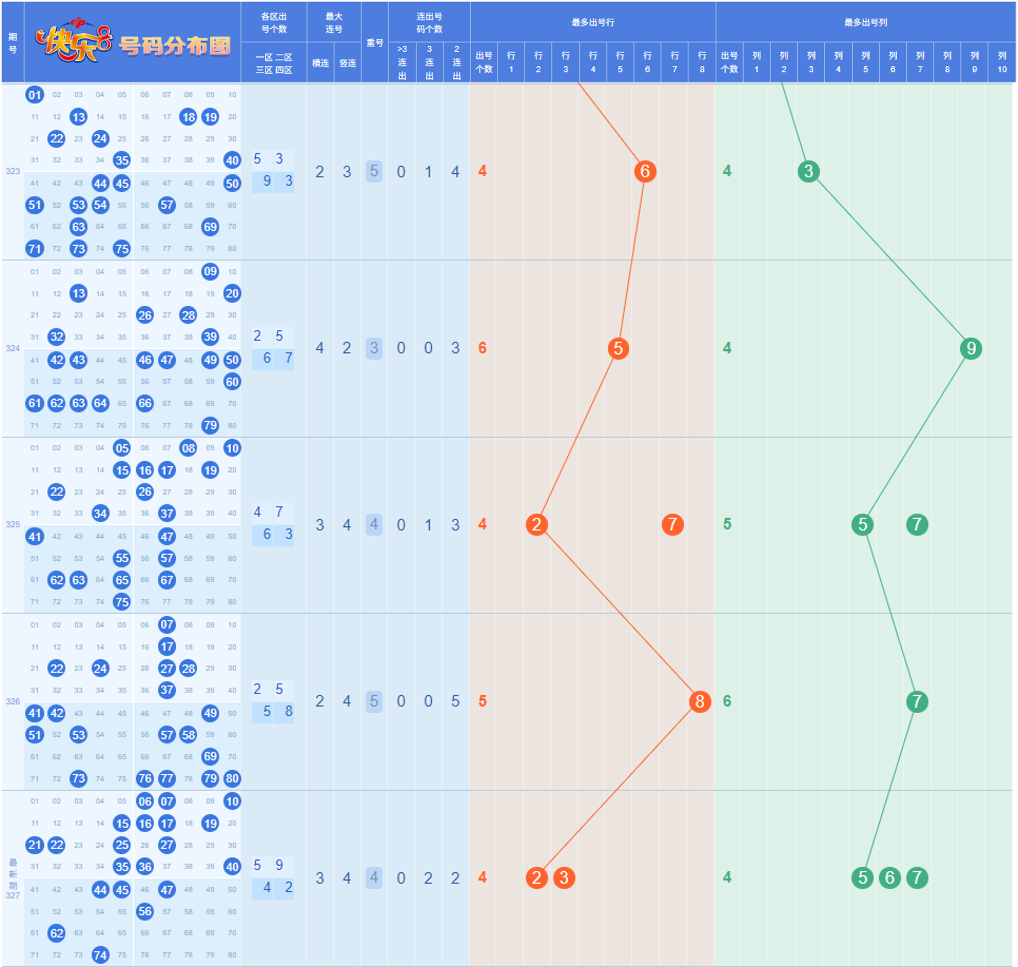近期走势:连码持续稳定出现。上期(327期)开出3组双连码,近5期连码组数均值为2.6组,热度稳定。