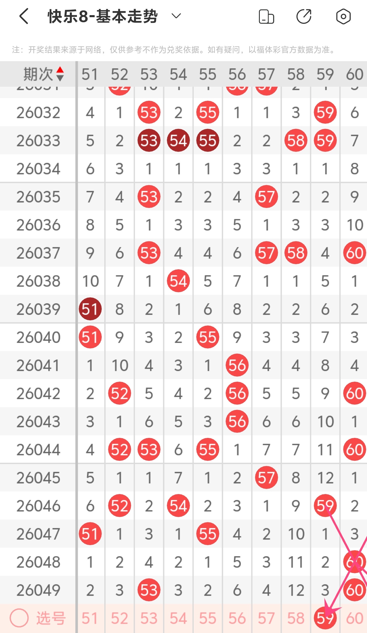 上期第六区间开出53 60,59为分边走势,本期推荐59