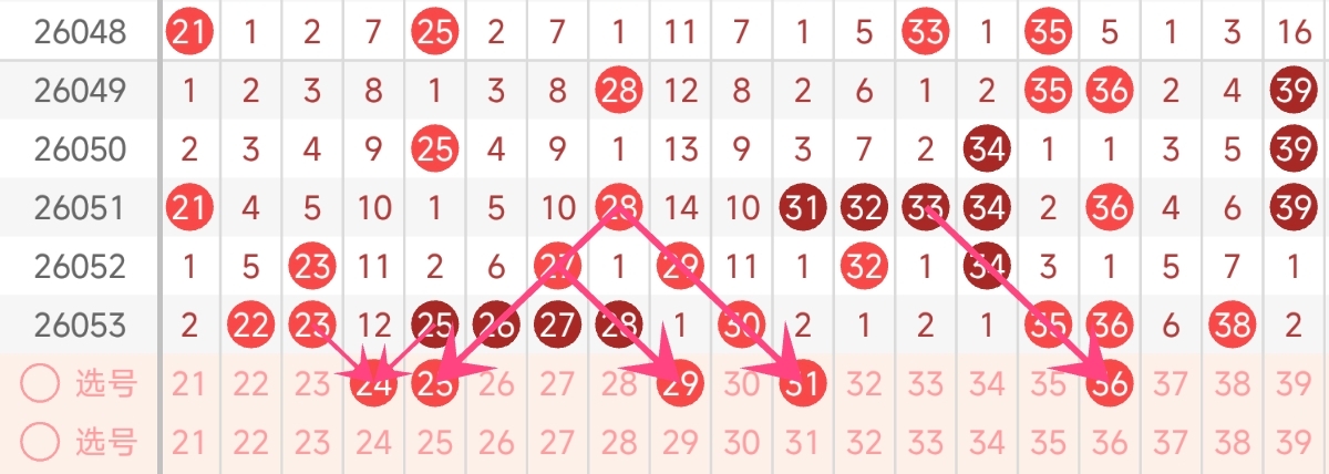 二区号码走势分析与推荐(21-40):