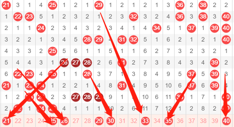 第二区间号码21-40,昨天咱们在文章中直接命中22,24,25,可喜可贺。二区目前是比较看好的区域,尤其这一期面临了如此多的走势号码。不妨做一下三连号。尤其号码40,按照前面40的走势,应该这一期还会出现三重号的40.