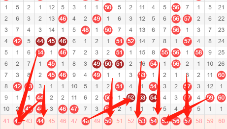 第三区间号码41-60,本期本区再加热,重点关注这一区。号码49没标注,但是48,49可以适当参考了。从走势上来看,这一区间本期走势比较多,不排除出现三连号以上的可能。