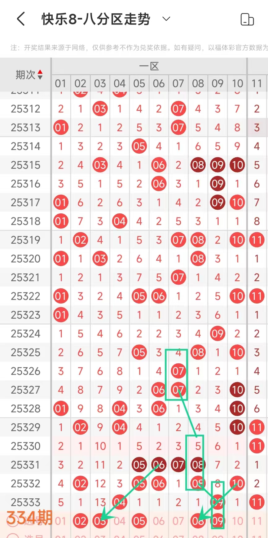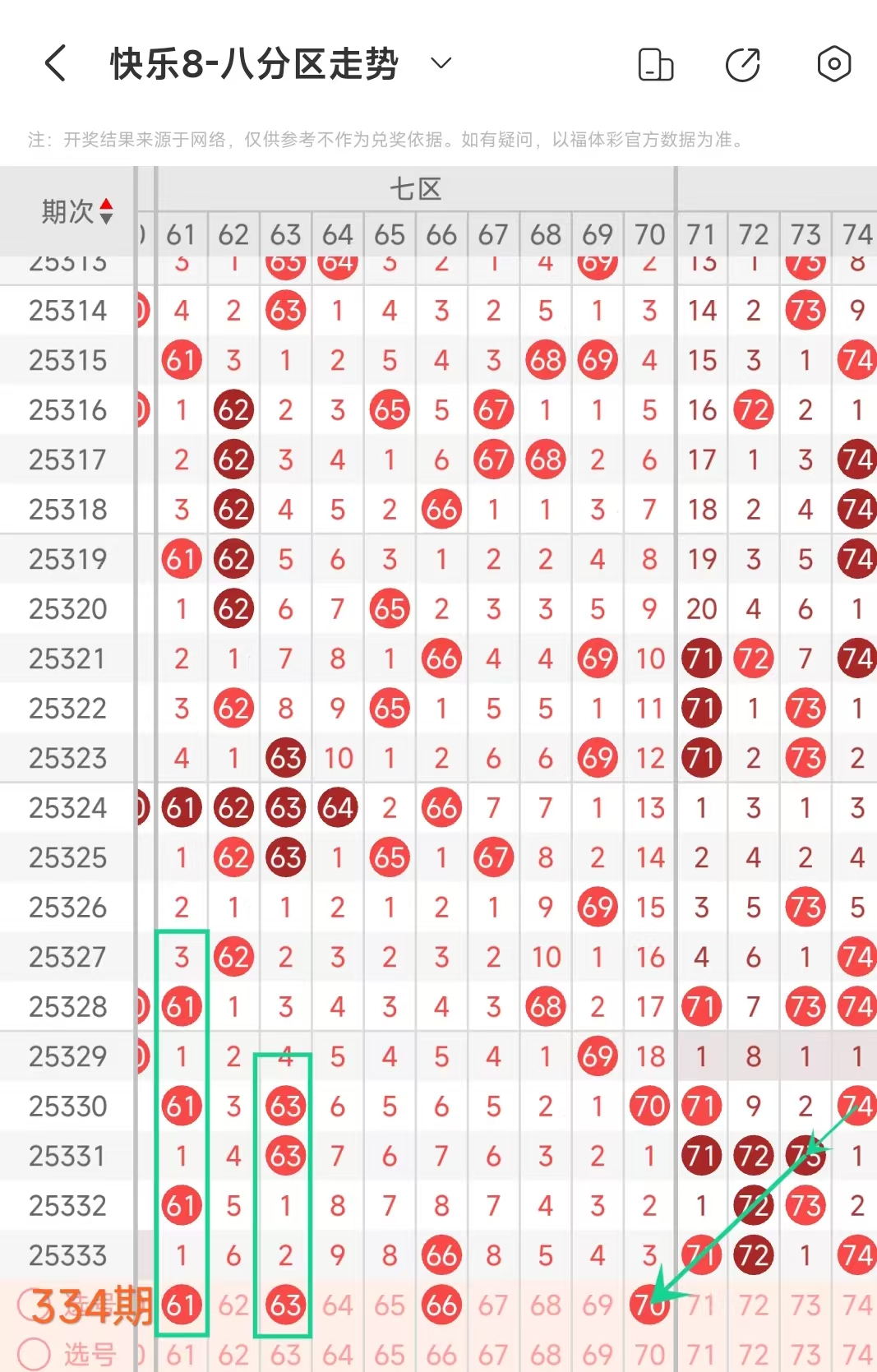 在快乐8的探索之旅中,通过对开奖走势图细致入微的观察,我们总结出一些具有参考价值的规律。几乎每一期开奖号码都呈现出以下显著特征:其一,大概率出现连号;其二,常常伴有边码;其三,遗漏值为1 2 3的号码频繁现身;其四,重号现象也较为常见。掌握这些要点,能为我们的投注提供方向指引。我们约定采用八分区走势图来展开分析。