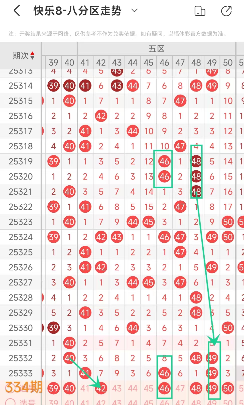 上期五区开41 46 49这3个号码,本期该区应该出号2个左右