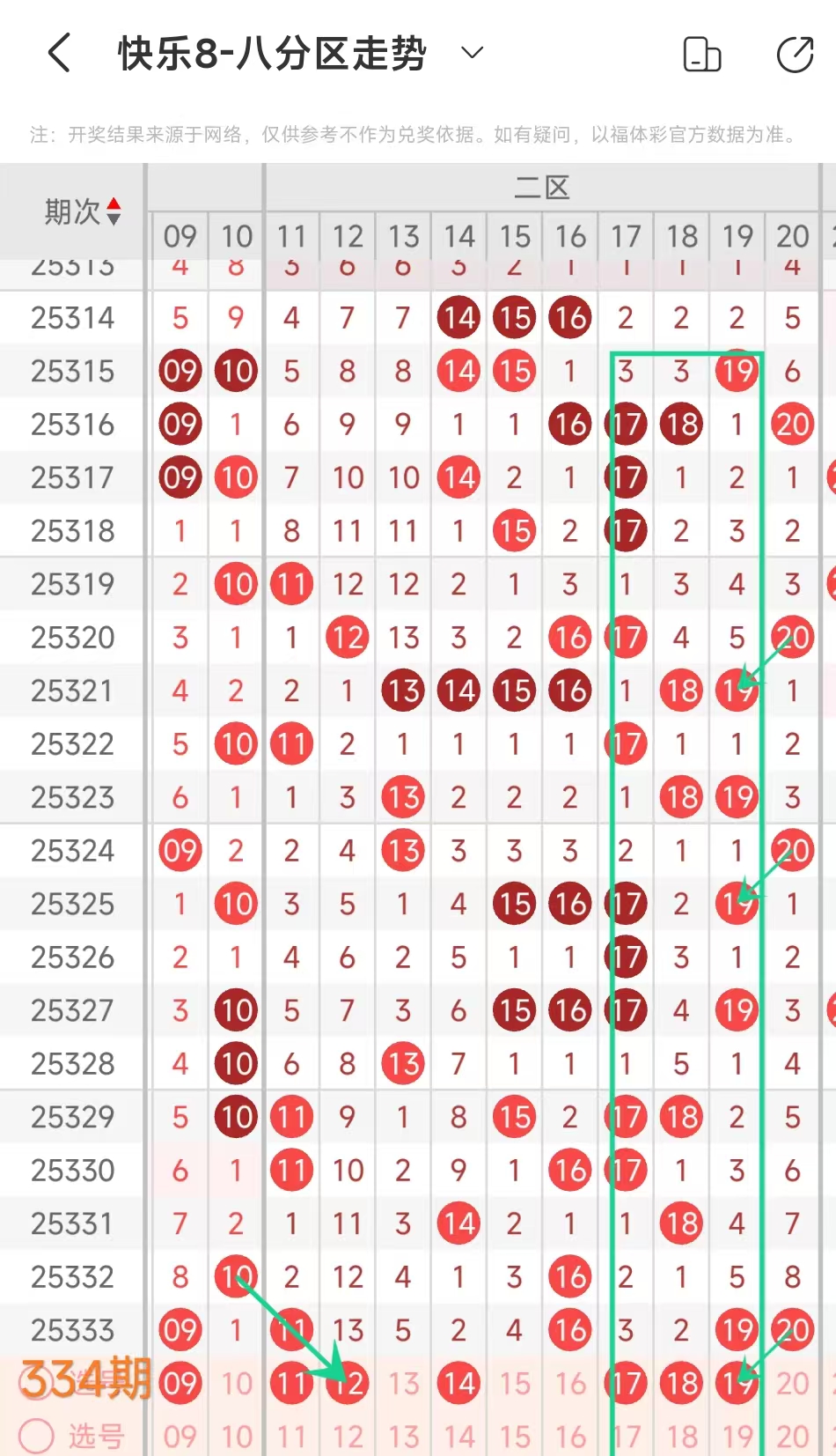 上期二区开出 11 16 19 20 这4个号码,本期应该出3个左右。