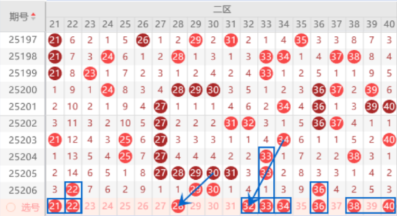 该区间的22号数字我们注意一下出重号码的情况,本期可以防守一下21 22号数字同出的情况。本期的26 27 28号数字是属于重号27号数字边号回补号码,本期我们注意出一个号码的情况,其中的27 28号数字我们可以重点关注一下。本期的32号数字我们关注一下出号情况,本期可以防守一下32 33号数字同出的情况。本期的36号数字我们注意一下出重号的情况,本期可以防守一下34 36号数字同出的情况。本期的38号数字也是有出号机会的,我们可以关注一下。