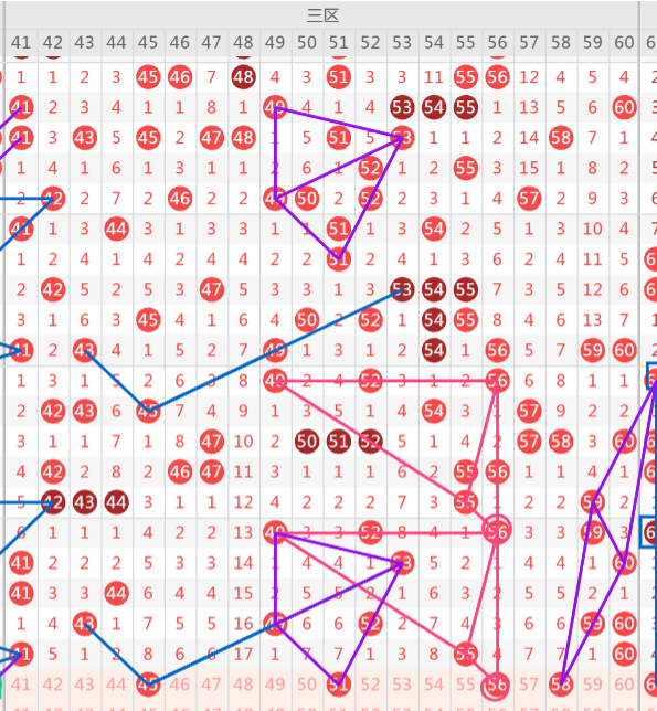 61、62、66:三个号码都是上方同形态号码落位回补,其中61和66都是遗漏四期回补,可重点二选一。再看61和62属于隔三号码,所以这里要二选一.