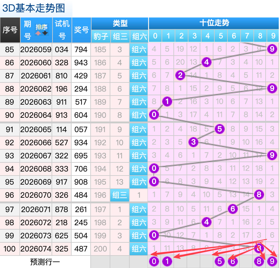 上期3D十位开出的奖号是8号,上期在十位上8号球这个号码是一个冷回补号码的回补落位点,本期来看1号在十位上要注意这个号码是有机会继续顺着上期的8号球继续走出冷号码的落位趋势这里的号码回补的落位形态注意防守就好,再来5号球这个点位注意防守走出3跨的落位趋势9号球这个号码是常搭配的顺位码回补要注意参考选择一码。0号球要注意走出拉拽的概率