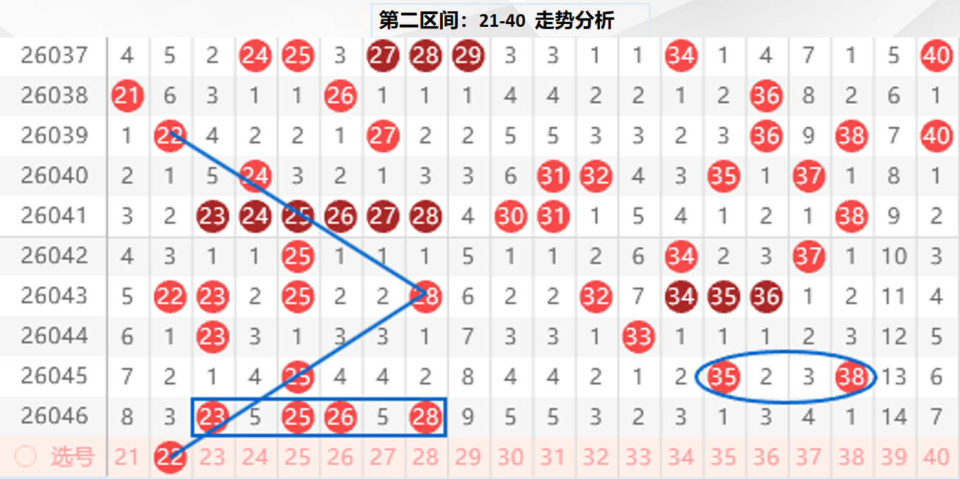 二区分析:【21-40】(走势图标注号码非小黄车大底,请谨慎参考,具体思路将在直播间分享讨论)