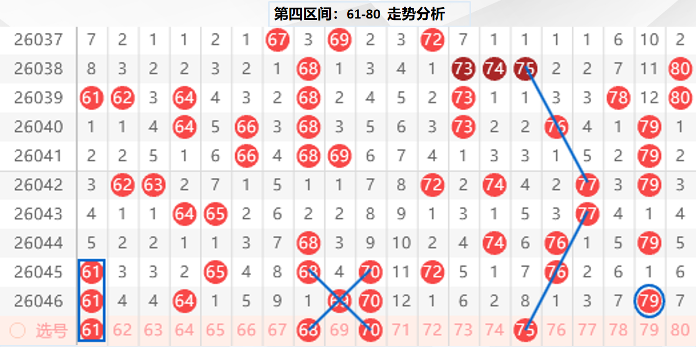 四区分析:【61-80】(走势图标注号码非小黄车大底,请谨慎参考,具体思路将在直播间分享讨论)