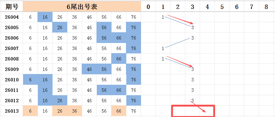 本期看好号码开出的范围是两码走势至四码走势之间。上期开出的尾号中,围中6尾和0尾,均开出三码走势!其中上期社区动态公开的胆码76和公开的选二26.76全中!目前连中三期!26年以来,已开12期,公开中了5期选二!期待本期继续爆发!