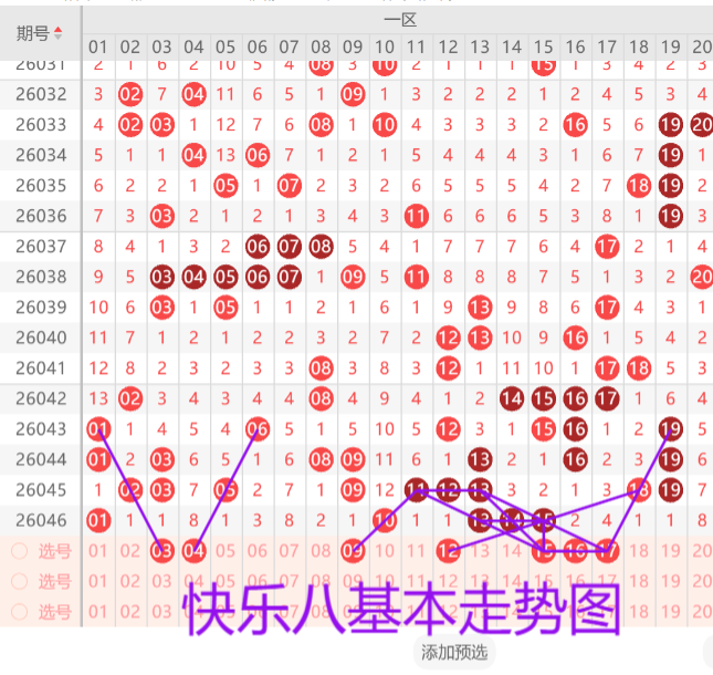 福彩快乐8第2026046期开奖号码: