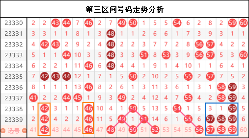 第三区间思路:三区有点遗憾,我们由于拿不准号码的趋向,对整个三区做了复式的布局,可惜还是差一码没有拿下。不过对于三区的走向我们确实是预测的比较准确的,尤其是46的出现,更是印证了我们在三区的思路。本期可以看到三区号码齐出,主线完整。那接下来恐怕三区将是多事之秋,也许走势并不像我们想象的一样完美。