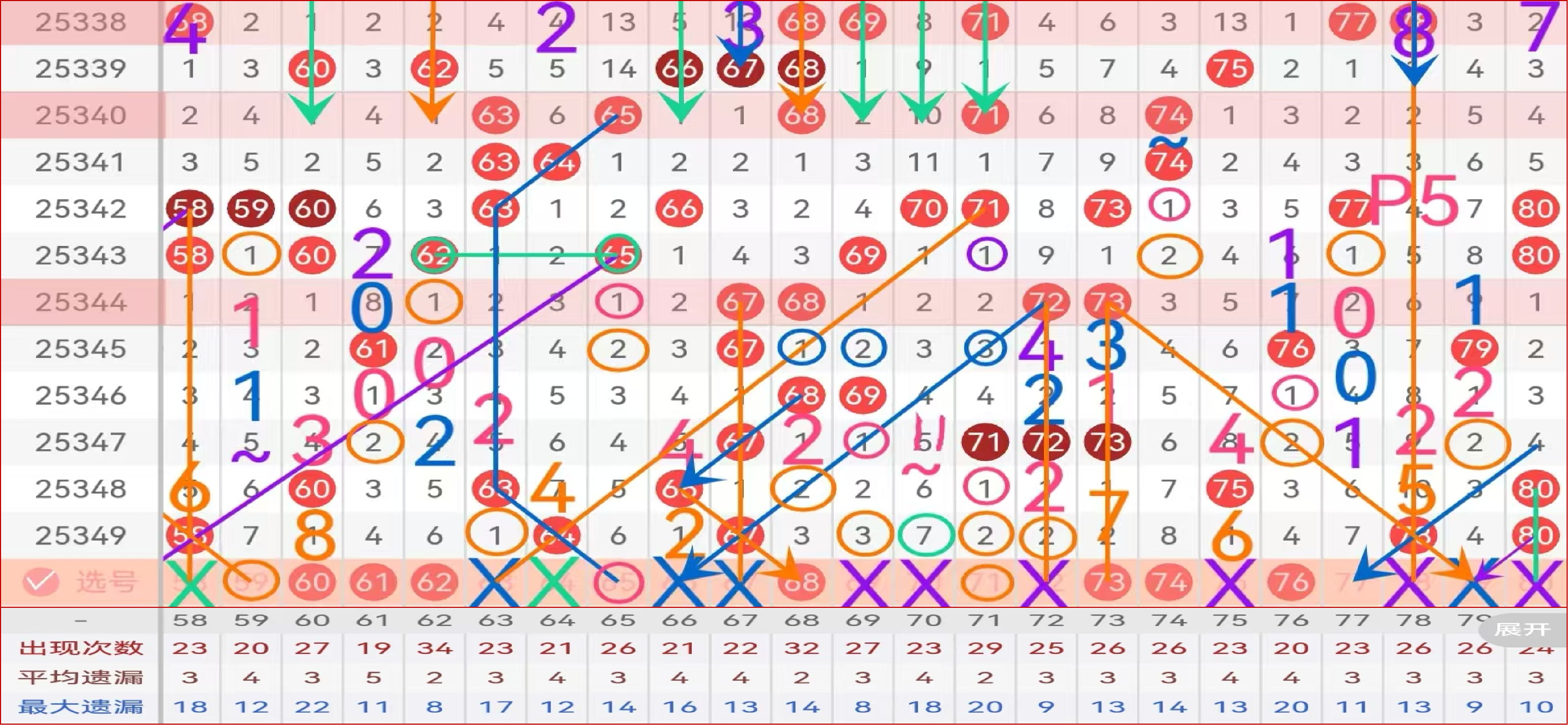 四区间上期开出了4个号码球,温态开出;龙头61,第三次走遗漏4,62高数据,第二次走遗漏6,这里的龙头61 62带上三区的60做三连主防,非常不错的点位,三择一主做推荐62;63 64风险规避;65三斜连,上下形态斜连对称,防守即可,65 68二择一推荐68主做,高数据,高分边属性的三斜连回三斜连的完美形态码,不建议68高倍胆码;69 70风险规避,基于数据角度可69做小防;71小数据可防;7字头73 74连号是本期主要关注号码球,高遗漏属性及遗漏回补属性码;75风险规避;76第三次走遗漏4,可做7字头中部回补号码球;尾部号码本期建议放弃;