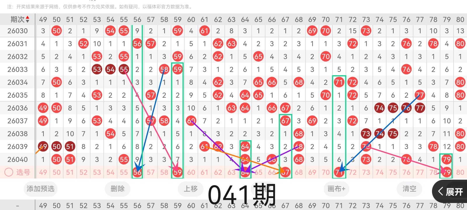 通过以上对上期的简单回顾,下面进入2026041期(下面简称本期)的选号分析: