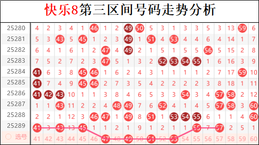 三区上一期虽然拿到了两个不解释的胆码,但是由于连码的缺失,导致我们的布局上再次失去了一码留下了遗憾。本期三区以同尾角度来看,不排除三重走势的突破。其次区间出现等差数列的回补走势,按照预判应该是“天坑”的可能性比较大,所以本期严重建议三区不要过度投注。尤其是龙头凤尾上一期直接来了一招乾坤大挪移,本期走势基本上按照腰斩的可能性之会开出两到三码,所以布局上实在拿不准直接规避三区也不是不可能的事情,舍得放弃才是最勇敢的布局。