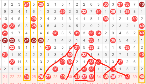 第二区间号码21-40,二区猜中了开头,没猜中结尾。28出现了,可惜29 30没有出现,不然又是一个三角形拿下。还在这里给我们预留了下一个三角形。更是有四斜连的出现打开了斜连走势的局面,所以今晚这里更精彩。