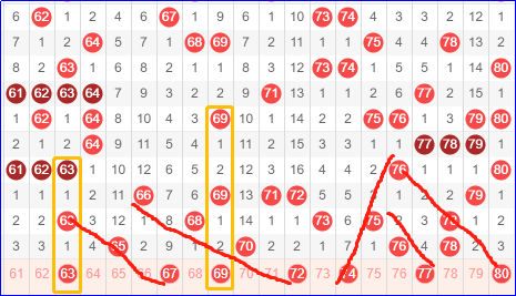 第四区间号码61-80,昨天说好的不看四区,它也确实表现不怎么样,仅仅出现了四个单号。如果按照走势号码周期回归的话,今晚这里也许有你想要的号码。但一定不是你最想要的,所以这里可以防守一下。