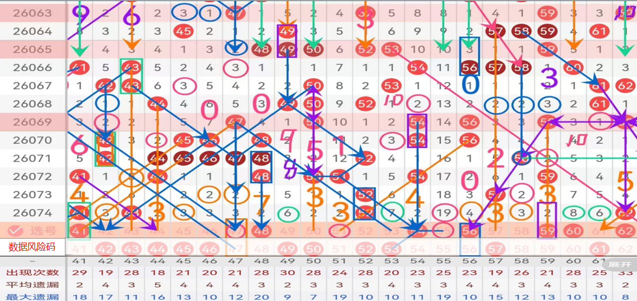 三区间推荐主做号码:41 48 54 56 59 60 ; 防守号码:47 51 55 58;