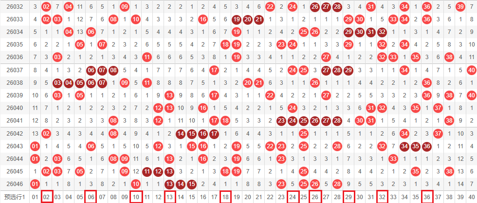 前区大底为:02.06.10.13.18.24.26.29.32.36.