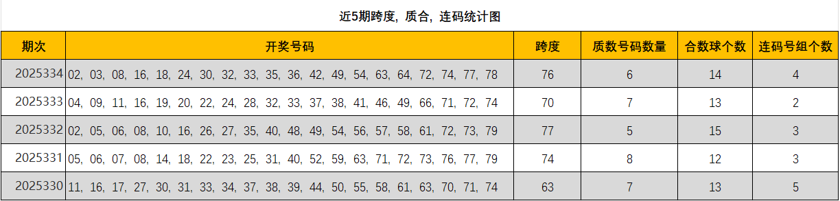 本期观点:上期跨度76。考虑到质数回补可能带动小号区(01-10)升温,而大号区(71-80)热度未减,两端发力可能维持跨度在高位。