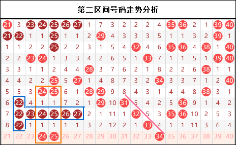 第一区间思路:一区可惜了,只出现了一个连号,但是思路上我们是整体盘下,一区直接拿下四个胆码。后半部分直接复制前期的走势这种形态真的是无法形容,太直接太明显导致很多人不敢下手。从本期走势来看,一区明显是无从下手的选择。整体上分成三部分的走势再周期中全是断区,所以一区防守思路比较明显。