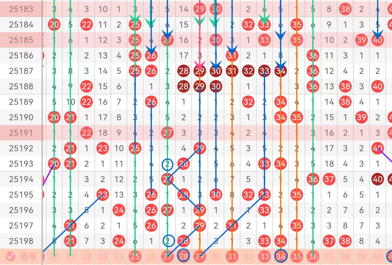 二区间推荐主做号码:25 26 27 33 34 40 防守号码:21 23 29 35 36;