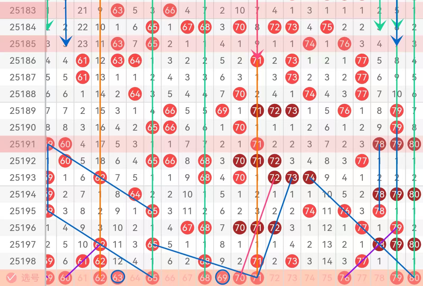 四区间给到主做号码球:65 69 71 76 79;防守号码球:61 63 70 75 76 80;