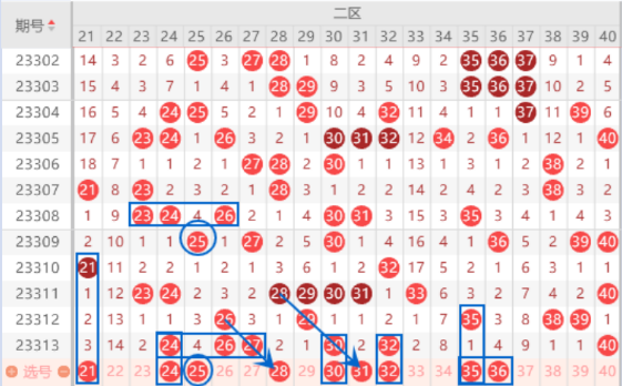 上期开出了连号空一带号24 26 27号数字,本期我们要注意走重的情况,夹号25号数字我们要也是要注意的。本期的28号数字是属于斜连三连号号码,我们要注意一下。本期的32号数字我们要注意走重的情况,防守一下30 31 32开出连号的可能。本期的35 36号数字我们防守一下同出的情况就行了。