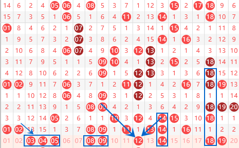 该区间的冷号03 04本期我们要注意出号情况了,本期有机会开出连号03 04的,我们要重点考虑一下。上期开出了连号08 09,我们要注意一下本期出重号的情况。本期的梅花号码10 12 15 53我们要注意出号情况,最少会开出一个号码,重点考虑一下12 53的出号情况就可以了。本期的18号数字我们要注意出号情况,属于重号空一对称,出号机会还是很大的。