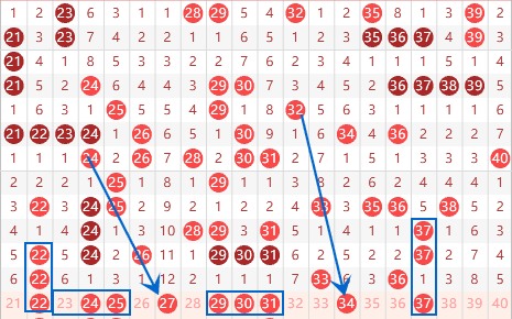 下图为21-40数字区间走势分析图: