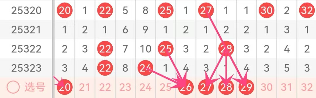 21-30区域:近三期出号数量为0.3.2,本期该区域推荐关注号码:26.27.29,该区域需要预防数字28,形成26.27.28.29的三连到四连组合