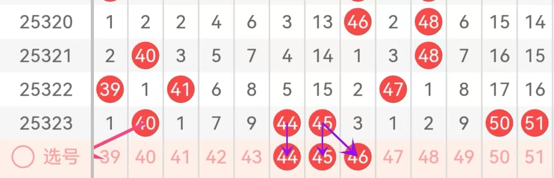 41-50区域:近三期出号数量为1.2.3,本期该区域推荐关注号码为:45.46,这里需要预防44.45一起拖下来的可能