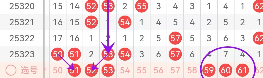 51-60区域:近三期出号数量为:2.1.4,本期该区域推荐关注号码为:52.53.需要预防59.60.61三个出现2个的情况50.51的拖号可能,前几期提示该组合守号58.59,6期左右可以出现,目前4期