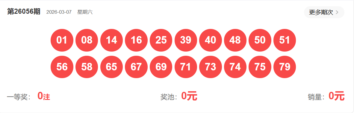 快乐8第056期开奖如下